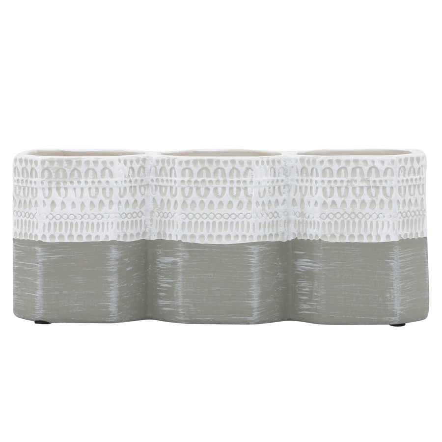 CERAMIC 11" PLANTER ON WOODEN STAND, GRAY