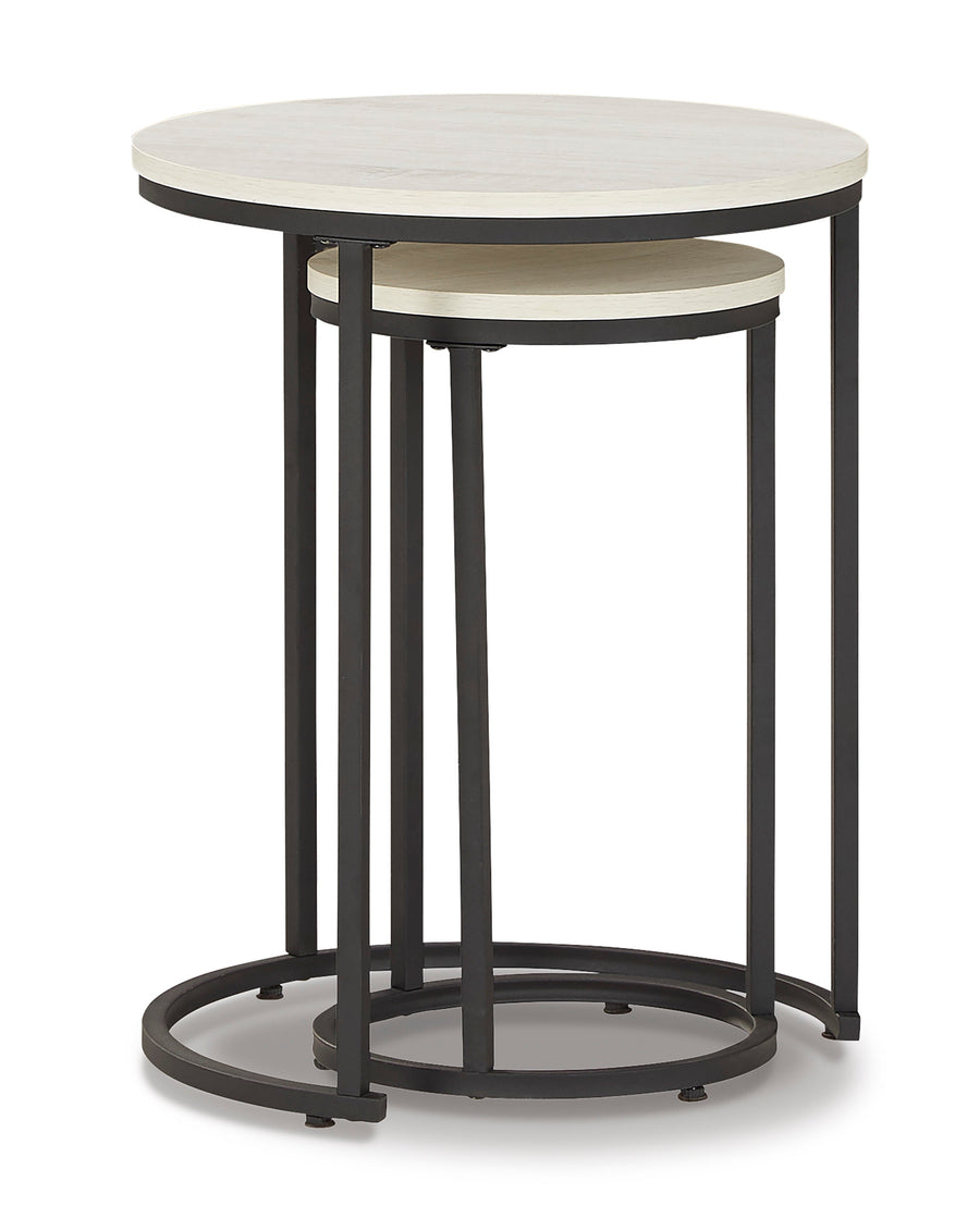 Round out your home with these Briarsboro circular top accent tables. In a nesting set of two, the white finished tables add casual flair. Black finished metal keeps things sleek. With space for lamps, photos and other accessories the possibilities for this set of accent tables are endless.