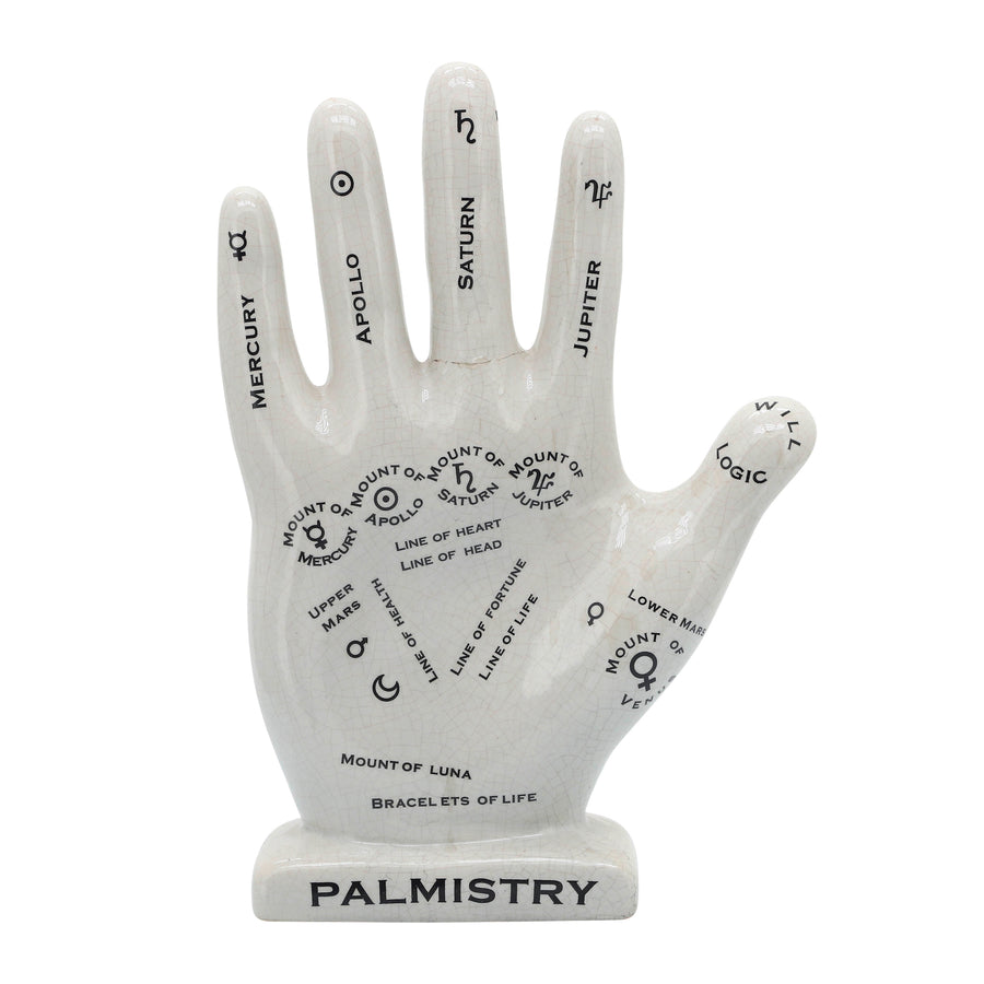 Porcelain, 12" Palmistry Hand Deco, White