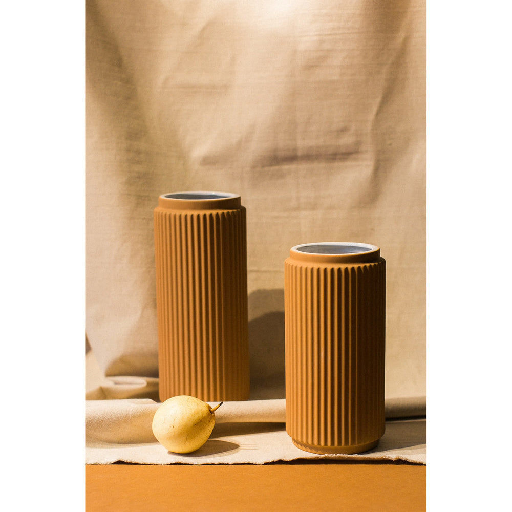 Cast convention sideways and introduce vibrant, tactile textures to your tabletops, sills, sideboards and worktops alike with Ribbit, our terracotta-inspired beauty. Pick a few blooms and lively greens along the way, this 12-inch handmade planter vase will turn any dull corner into a vibrant focal point with its height play. 100% stoneware, this slender, grooved creation comes in a slightly shorter counterpart – together, these sleek ceramics are a statement-making moment waiting to happen.