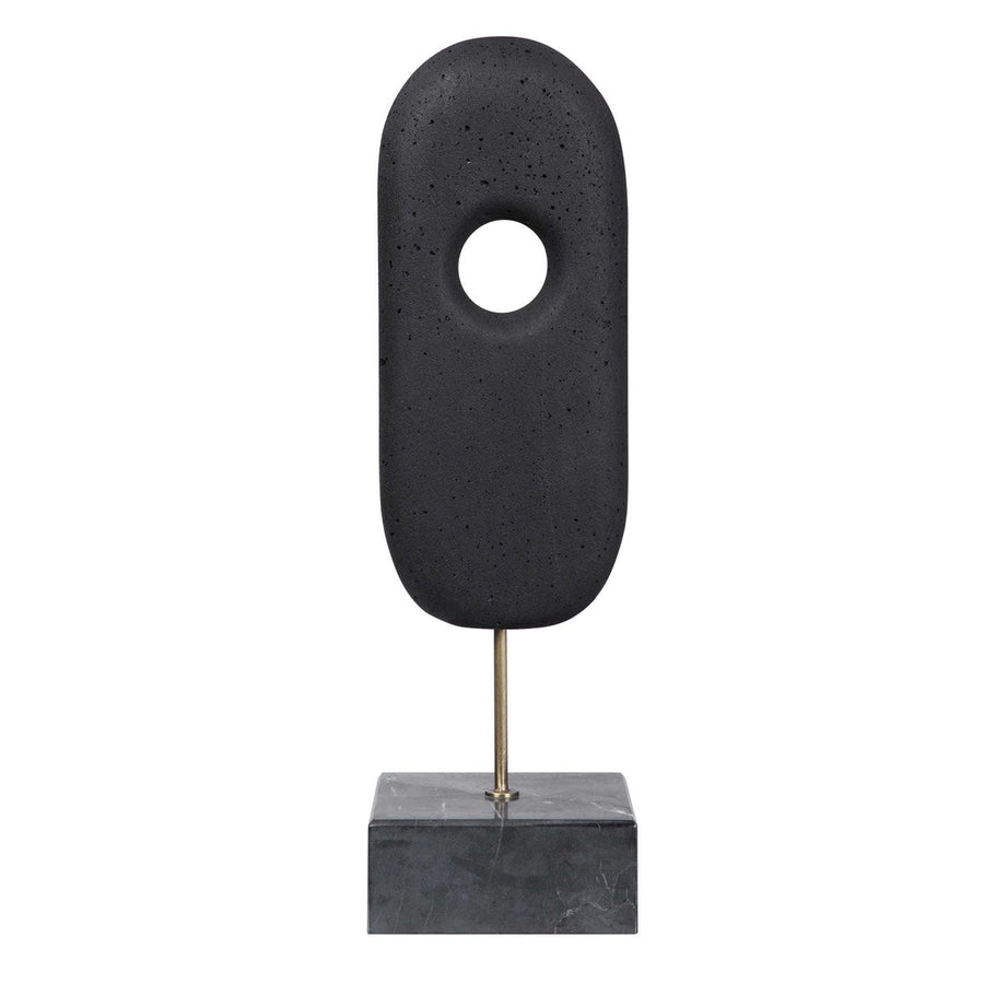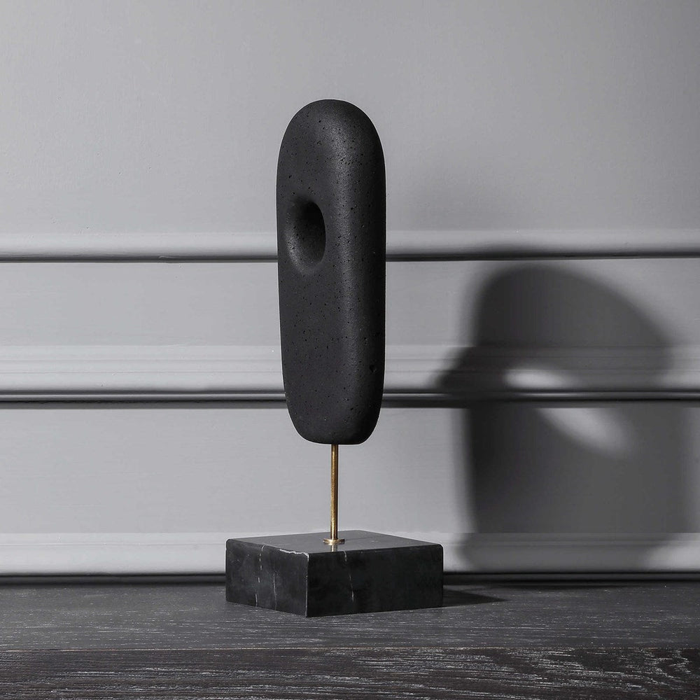 Minion is defined in Webster's as one who is highly prized. The monolithium shape executed in ground black marble and polymers with a honed black marble base and brass pegs is bound to become a highly prized artistic accessory. They look great when placed individually. All the shapes are designed to coordinate and group together to create a great design statement.