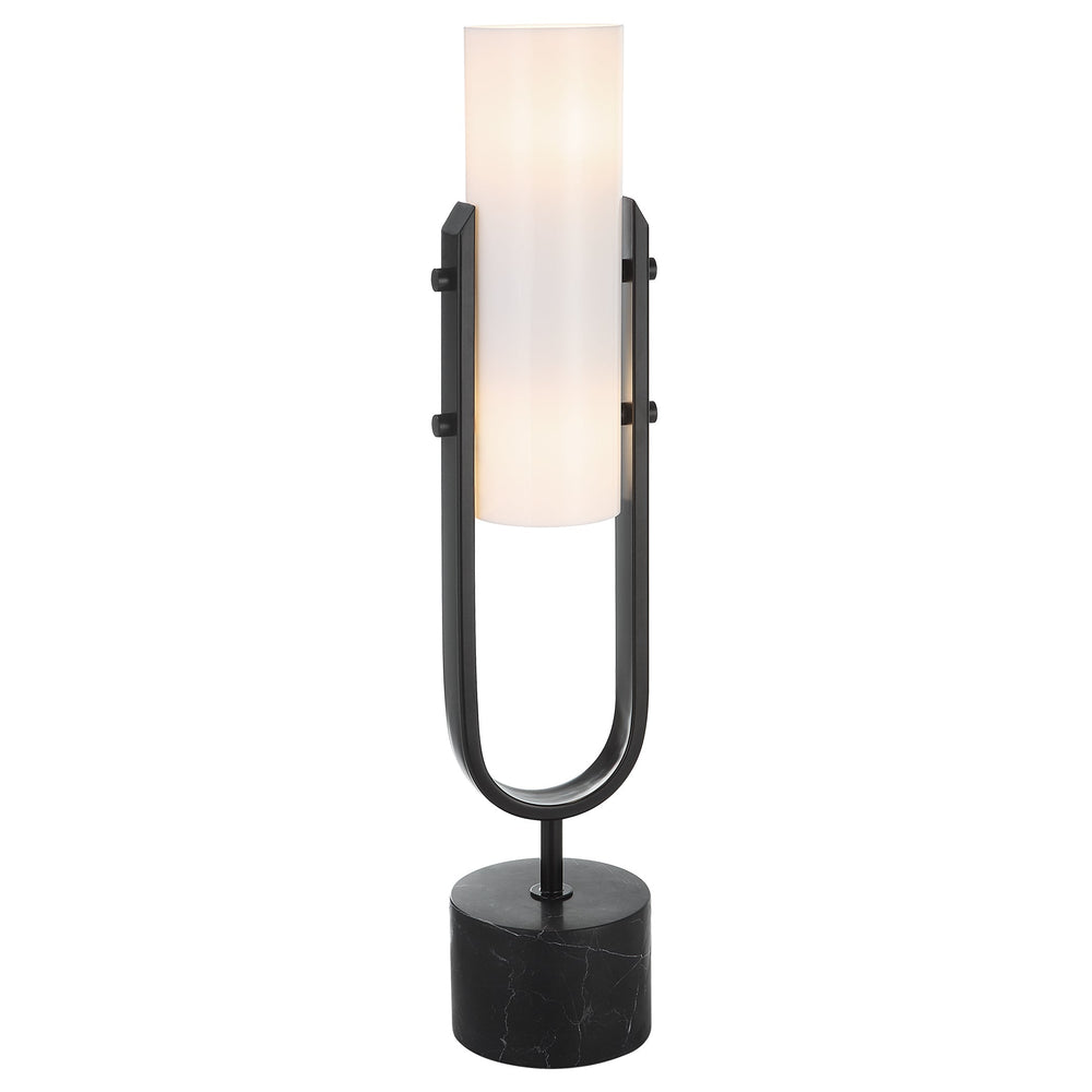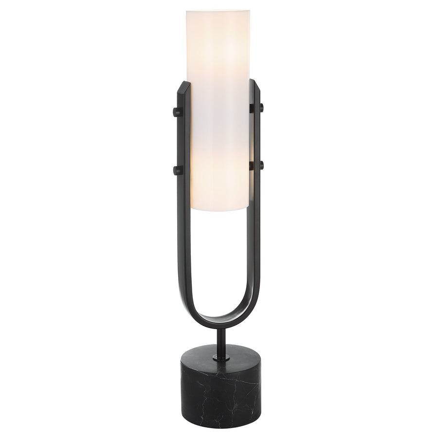Finish/Frame: Equal Parts Stylish And Functional, This Tabletop Accent Features A Sleek Black And White Design With A Solid Marble Foot, Steel Body And White Acrylic Shade.