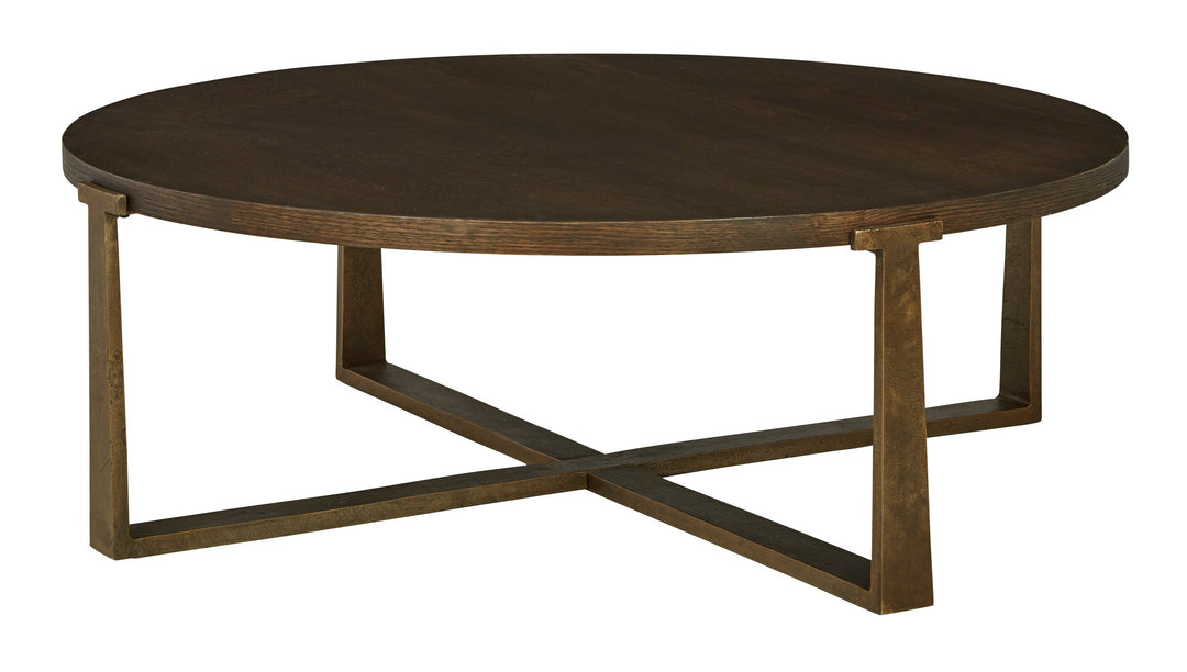 Chic and sleek, the Balintmore coffee table satisfies your taste for contemporary design. Its warm brown top is neutral and refined, while an antiqued goldtone base adds textural character. Place your favorite decorative accents on top to transform your living room into a curated modern masterpiece.