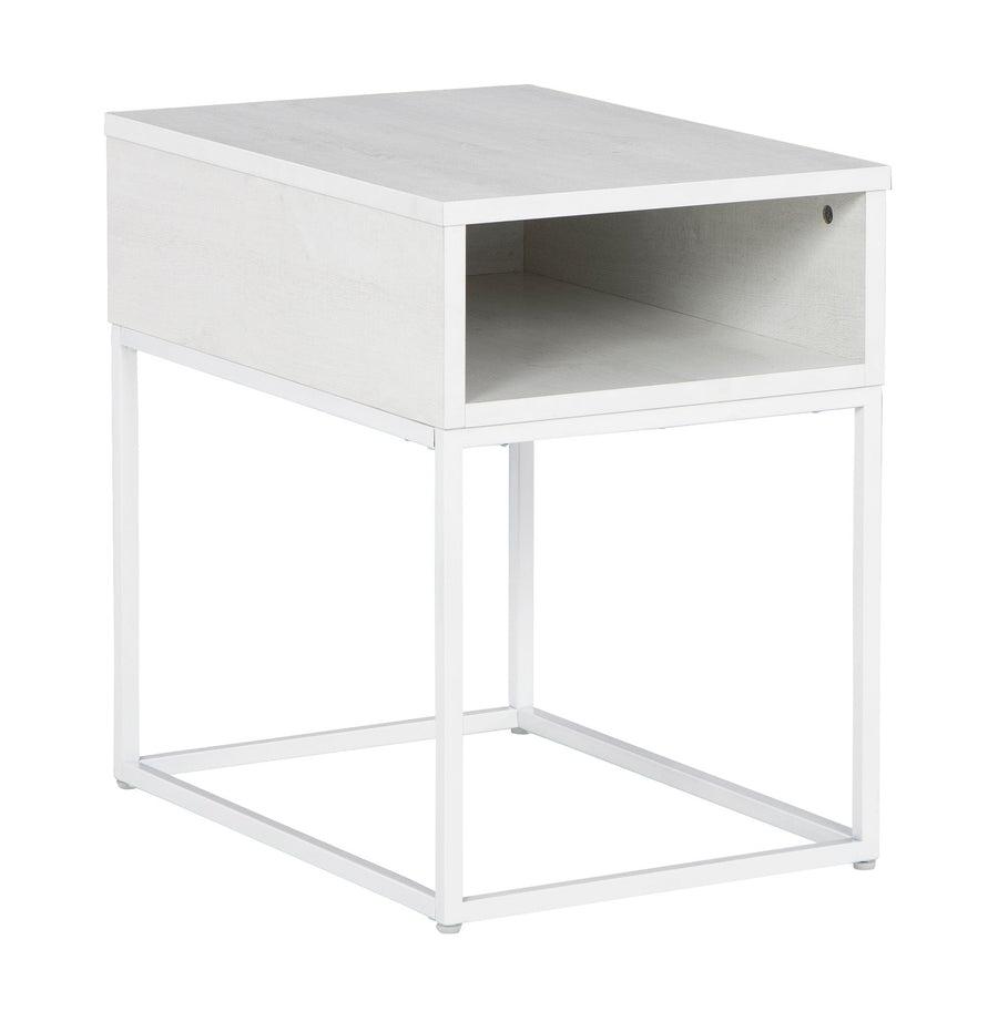Bring your vision of a modern living room to life with the sleekly designed Deznee end table. Its linear construction and white finish keep things minimal. This piece keeps your morning coffee, reading lamp or favorite book within your reach in simply streamlined style.