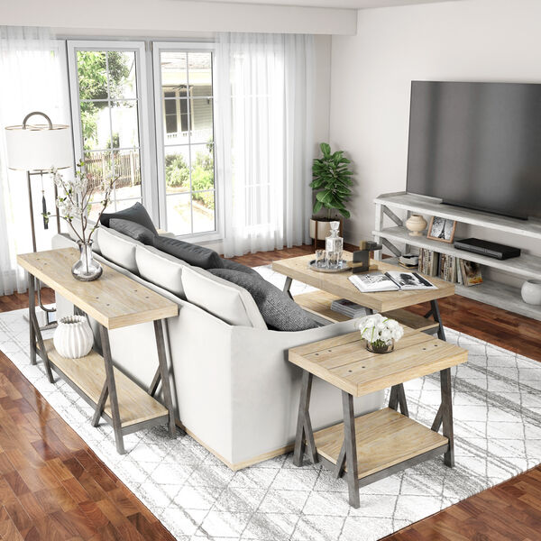 This attractive console meets all your 21st century technology needs in a vintage-inspired style that suggests simple farmhouse living. Its open construction features three shelves in an airy white finish, framed in a top gallery rail that?s as functional as it is beautiful. Rural chic meets a structured modern aesthetic in this storage piece, providing plenty of space for all your electronic devices and additional living room accessories.