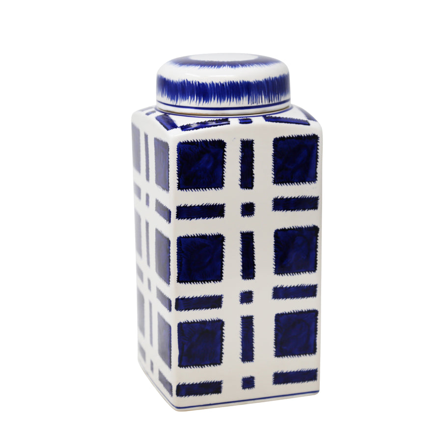 BLUE/WHITE PLAID JAR 12"