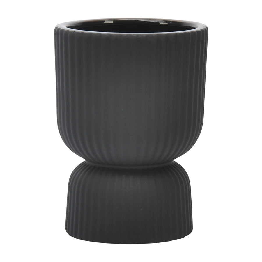 CER, 6"H RIBBED VASE, BLACK
