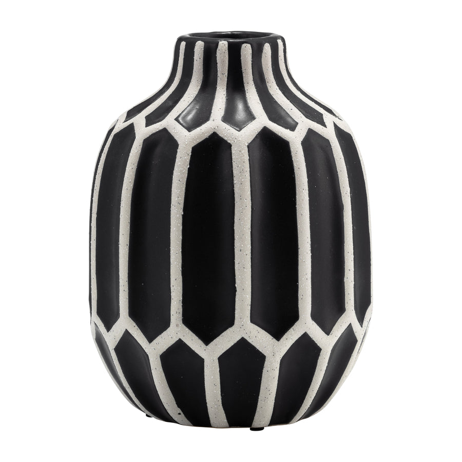 CER, 8" DECORATIVE VASE, BLACK/WHITE
