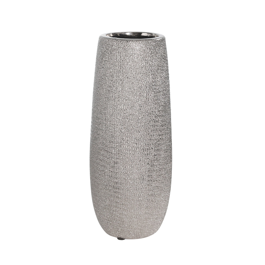 CERAMIC 9.75" VASE , SILVER