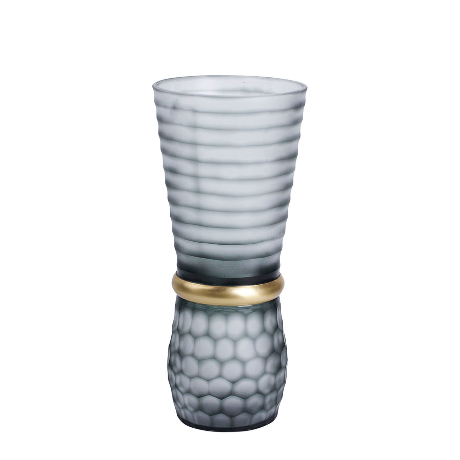 GLASS 14" VASE W/ GOLD BAND,GRAY