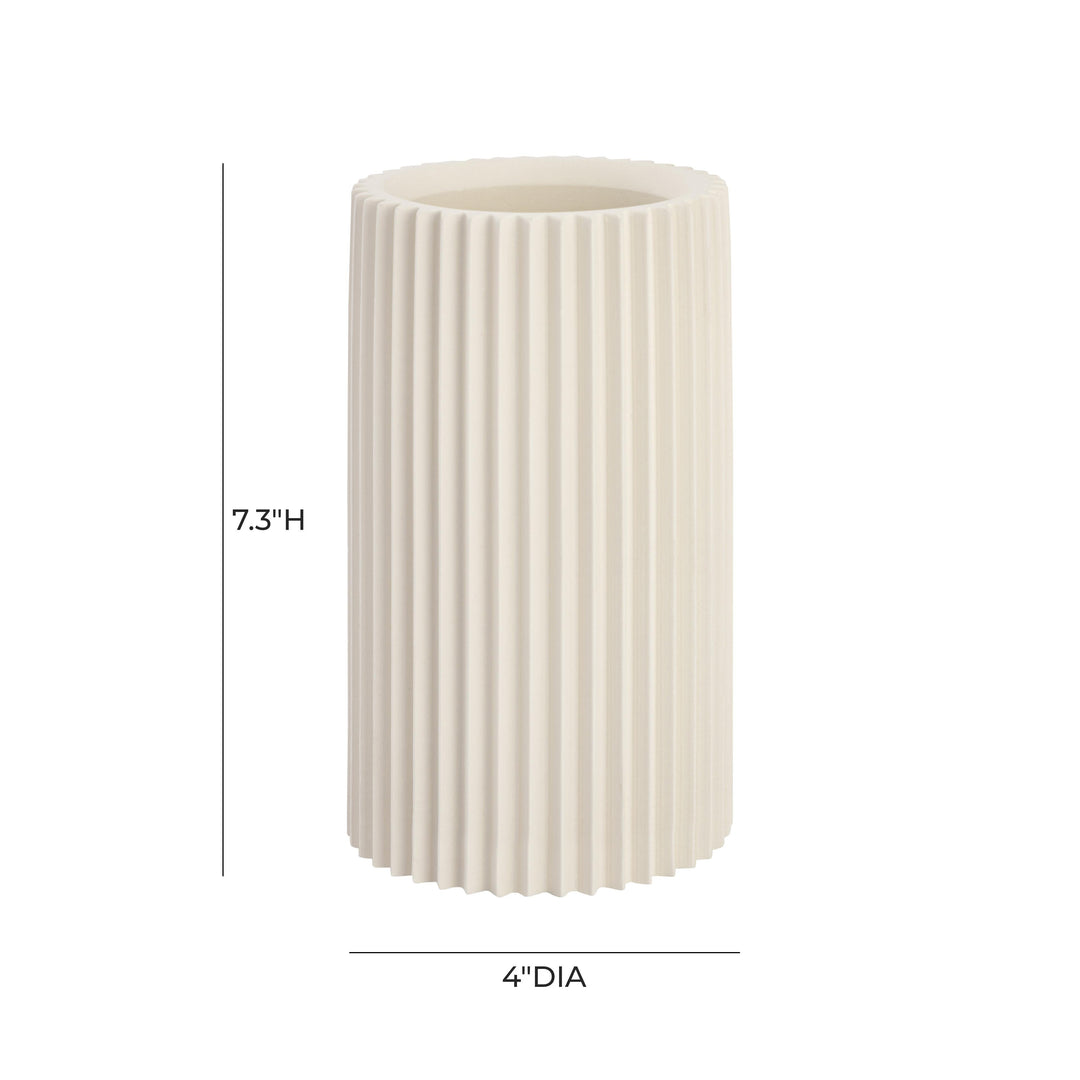 Minimalistic and classic, you can't go wrong with the Jenna Vase. Sculpted from concrete, this vase can be used to hold fresh flowers or simply as an accent piece. Its intricate grooves and sophisticated shape will complement any surface!