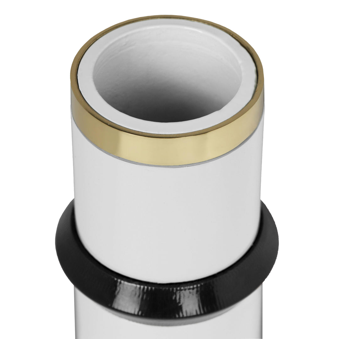 Go for the bold with the Kaonashi Vase, inspired by iconic Memphis postmodern style. Handmade by skilled artisans, this candelabra showcases impeccable craftsmanship. Constructed with a combination of iron and aluminum, it exudes both durability and modern flair. Available in black, burgundy, and mustard yellow, it offers a range of striking colors to complement your unique decor. Decorate your space with this standout piece that effortlessly combines form and function.