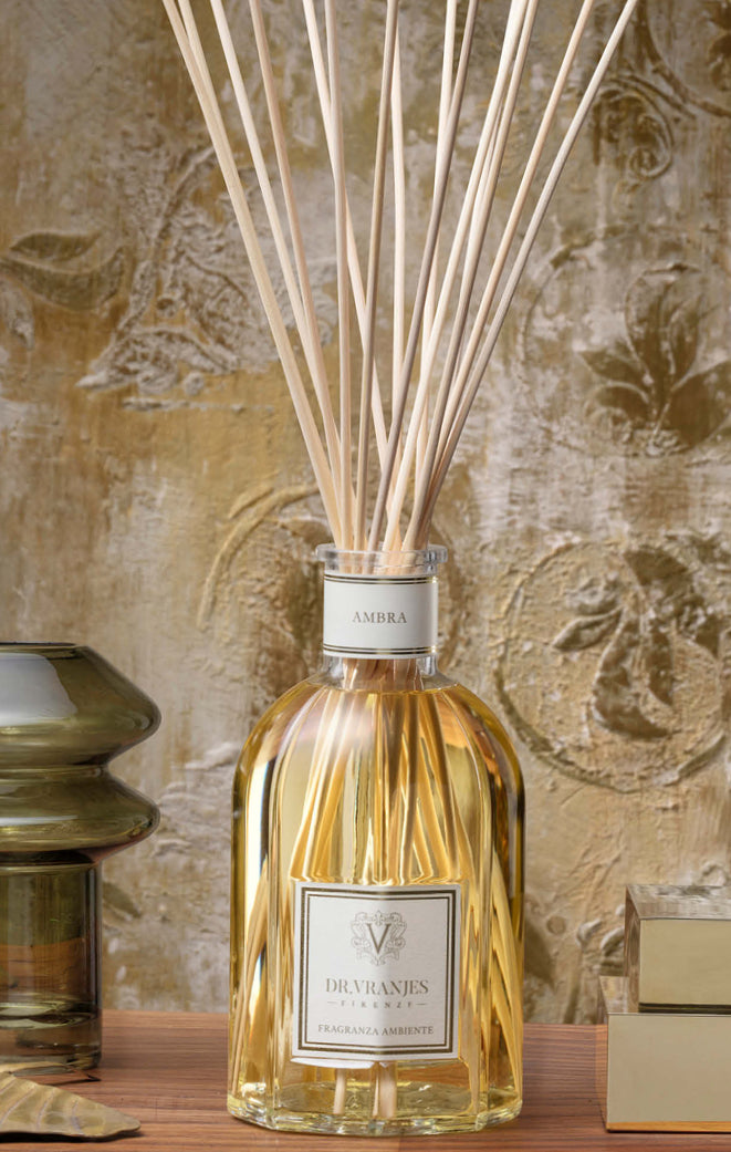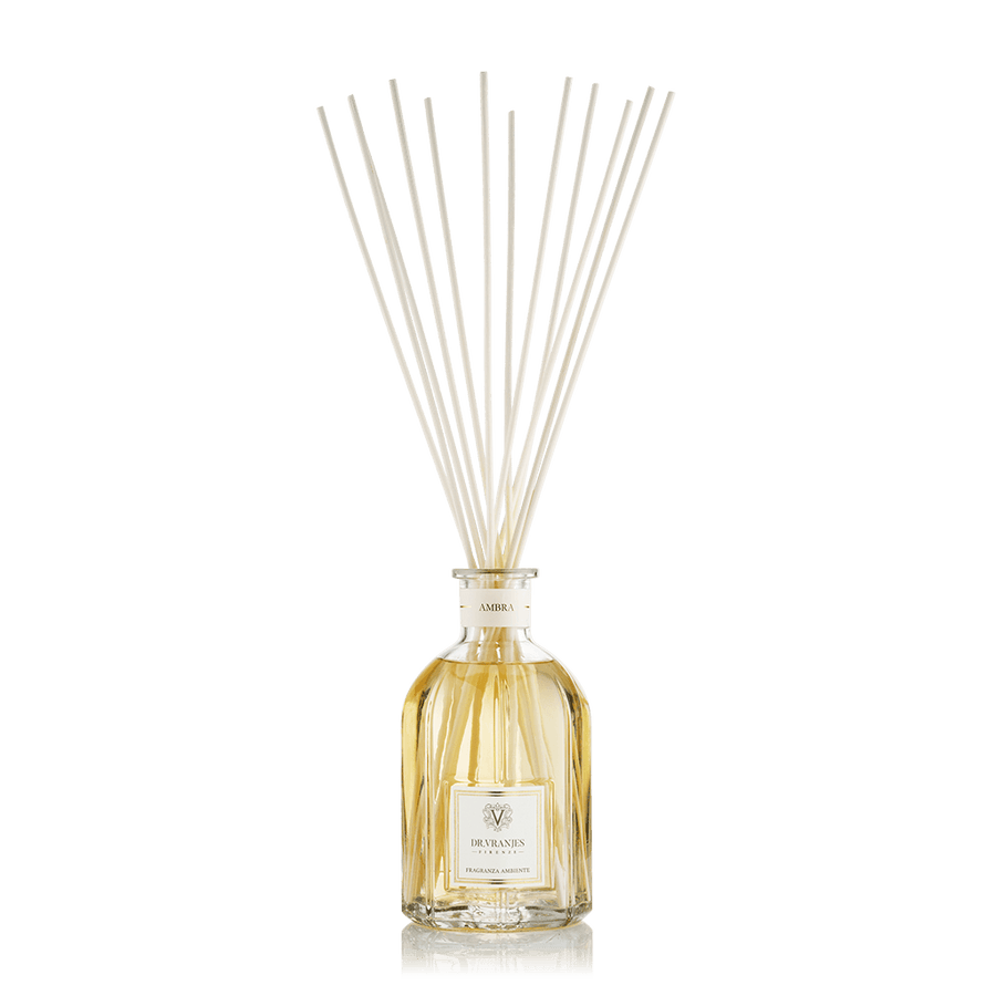 In this home fragrance, the elegant amber and patchouli base develops with the intense notes of sandalwood and vanilla. The fascinating mystery of the Oriental amber gives relaxation to living spaces and bedrooms, adorning them with a pleasant and charming sensation.