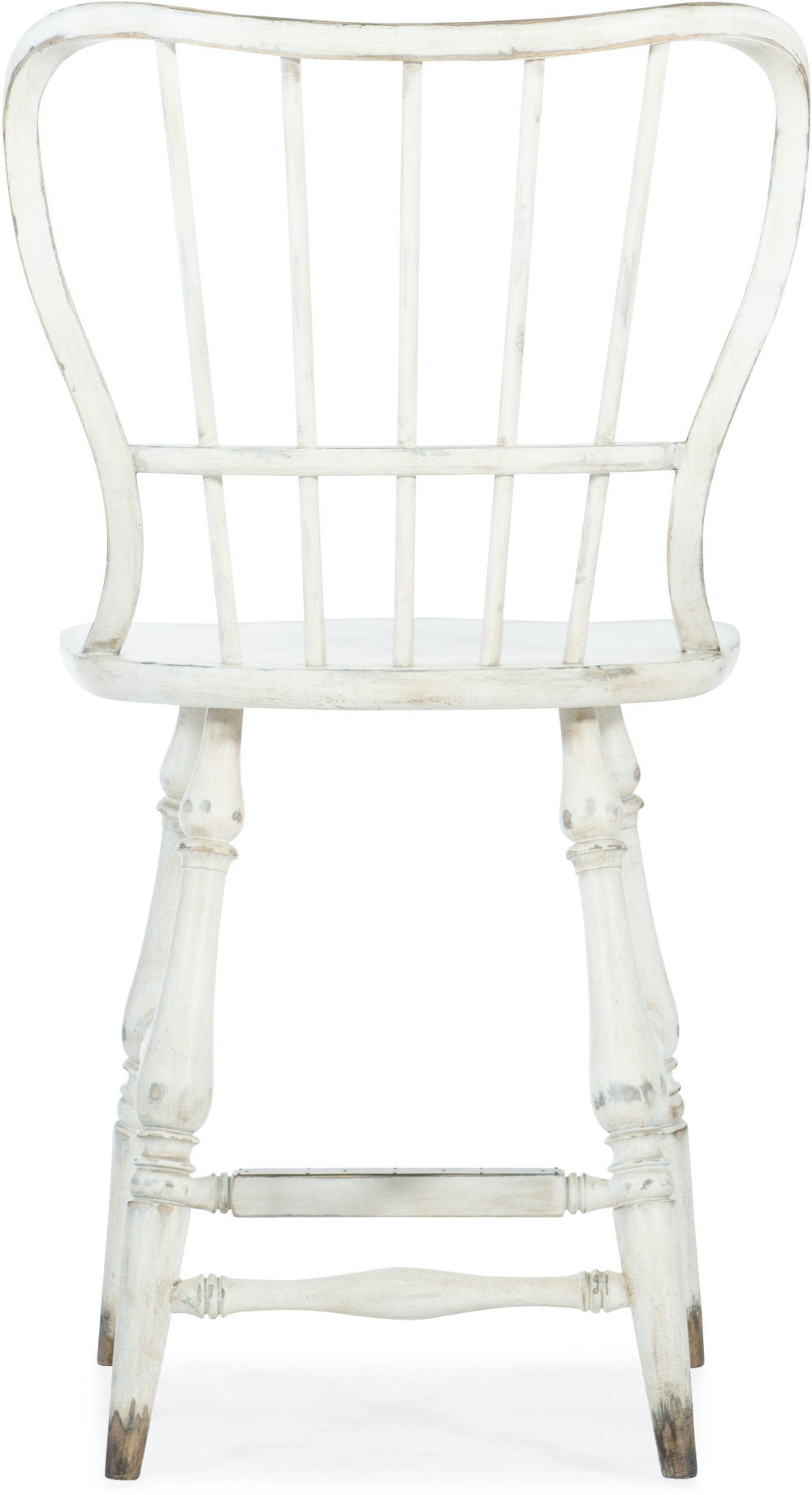 With a casual chic spin on classic European farmhouse and cottage style, the graceful silhouette of the Ciao Bella Spindle Back Counter Stool is destined to be a favorite of family and guests alike. The compelling Vintage Chalky White finish with a gently worn dry antique paint patina has the charm of chalk paint finishes. 42 _ inches high.
