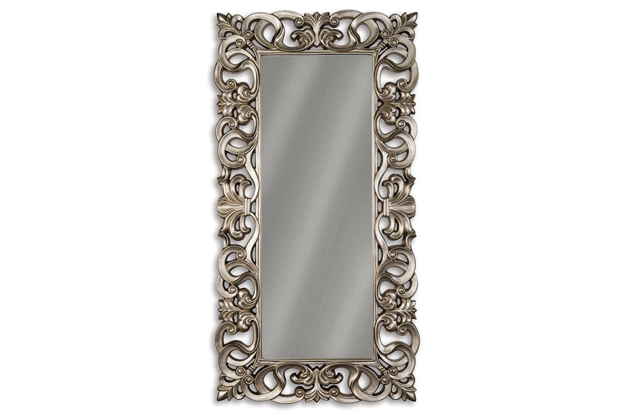 Exquisitely crafted for any glamour queen, the Lucia floor mirror is a splendid accent. Antique silver finish brings life to the ornate scroll design.