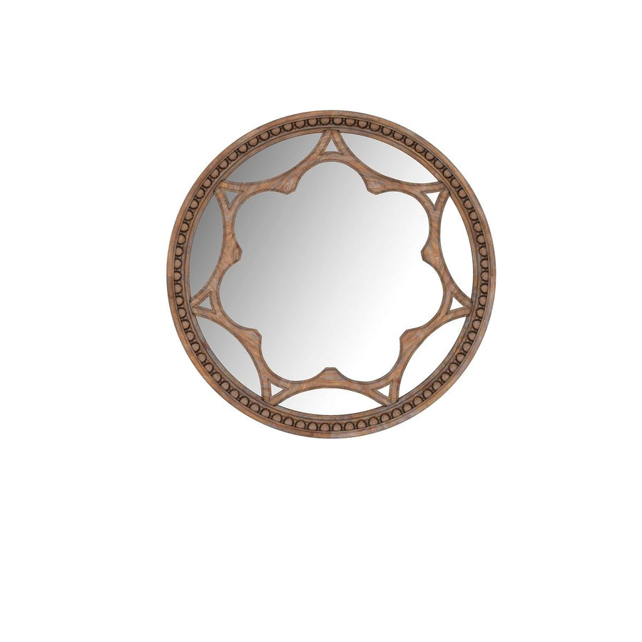 Graceful arches frame the center of this round mirror, creating the illusion of gazing through an 18th-century cathedral window, complete with classically inspired egg-and-dart details.