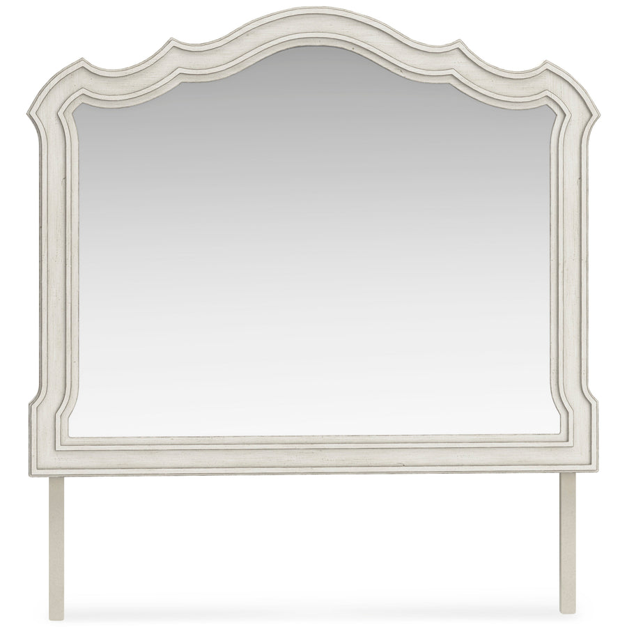 Add a touch of romance to your bedroom with the Arlendyne mirror. Its antiqued white painted finish and serpentine-shaped silhouette details are the picture of easy elegance.