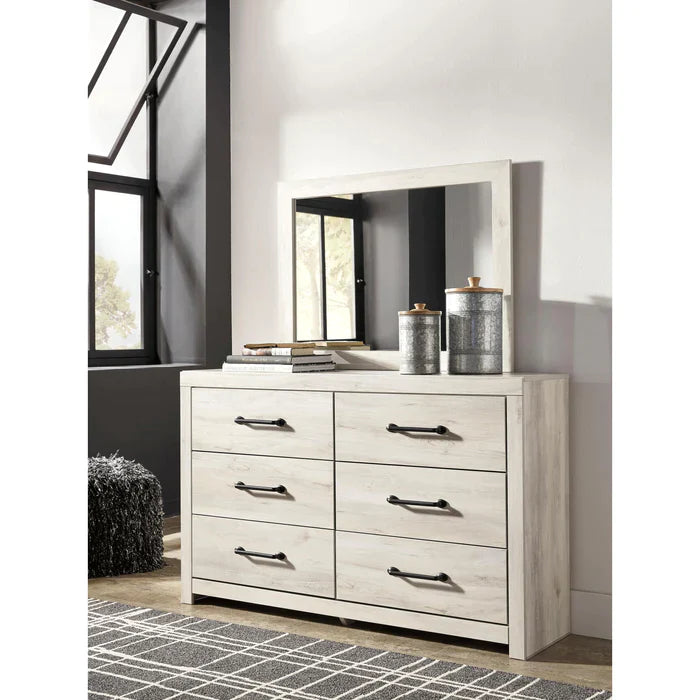 What a delightful take on rustic industrial style. Whether modern loft or modern farmhouse, the Cambeck mirror makes itself at home. The wispy whitewash palette enhances without covering the grain for that weathered look you crave. Whether it's mounted on a dresser or to a wall, it's sure to be an everyday staple.