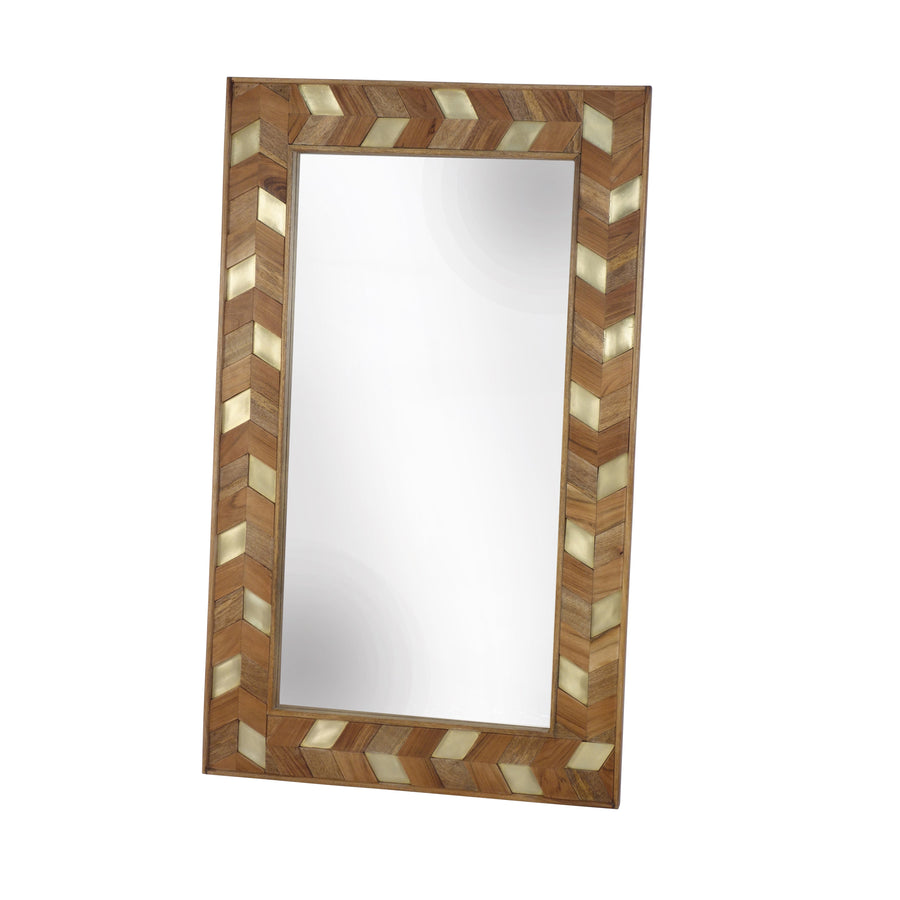CHEVRON DESIGN WOODEN MIRROR, BROWN