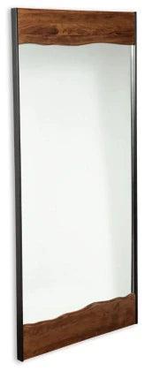 Wood, mirrored glass and metal;Faux live-edge design;Keyhole hanger;Vertical handing only