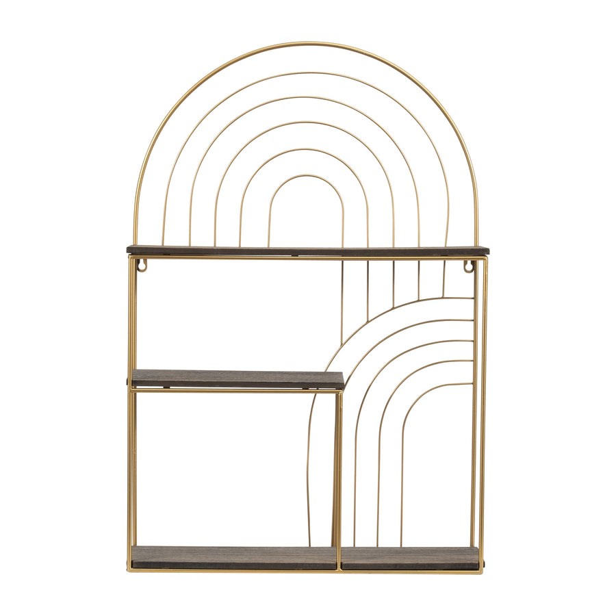 METAL/WOOD, 30" ARCHES WALL SHELF, GREY/GOLD