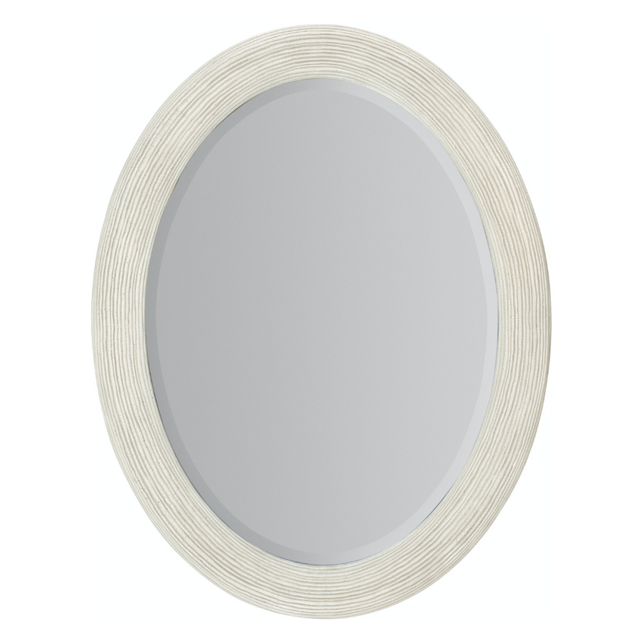 Inspired by casual waterfront living, the oval-shaped Amelia Mirror has a textured finish available in a whitewashed or weathered gray finish and a beveled edge for a stylish simplicity.