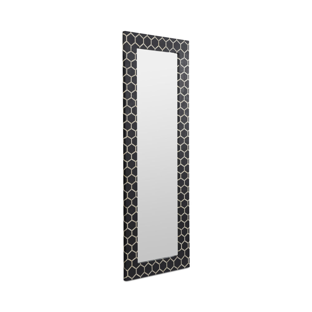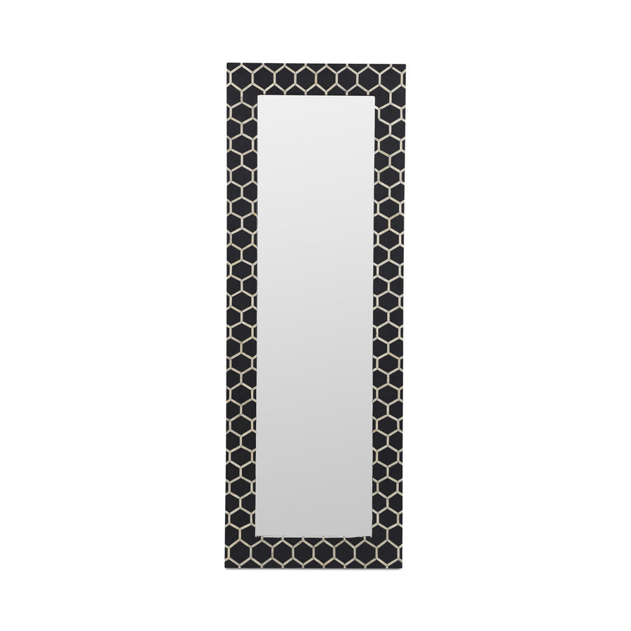 The Sosa mirror is an eye-catching piece of contemporary home décor, in more ways than one. The bone inlay frame features a beautiful ivory-colored honeycomb design, making the tall Sosa mirror your home's stylish accent.