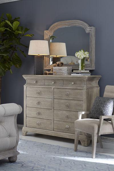 The charmingly simple frame of the Smith?s Bayou Mirror is constructed of expertly mitred cove molding with a gentle arch that echoes the shape of the Shoals Sleigh Bed. The oak frame is in a light scrubbed finish.