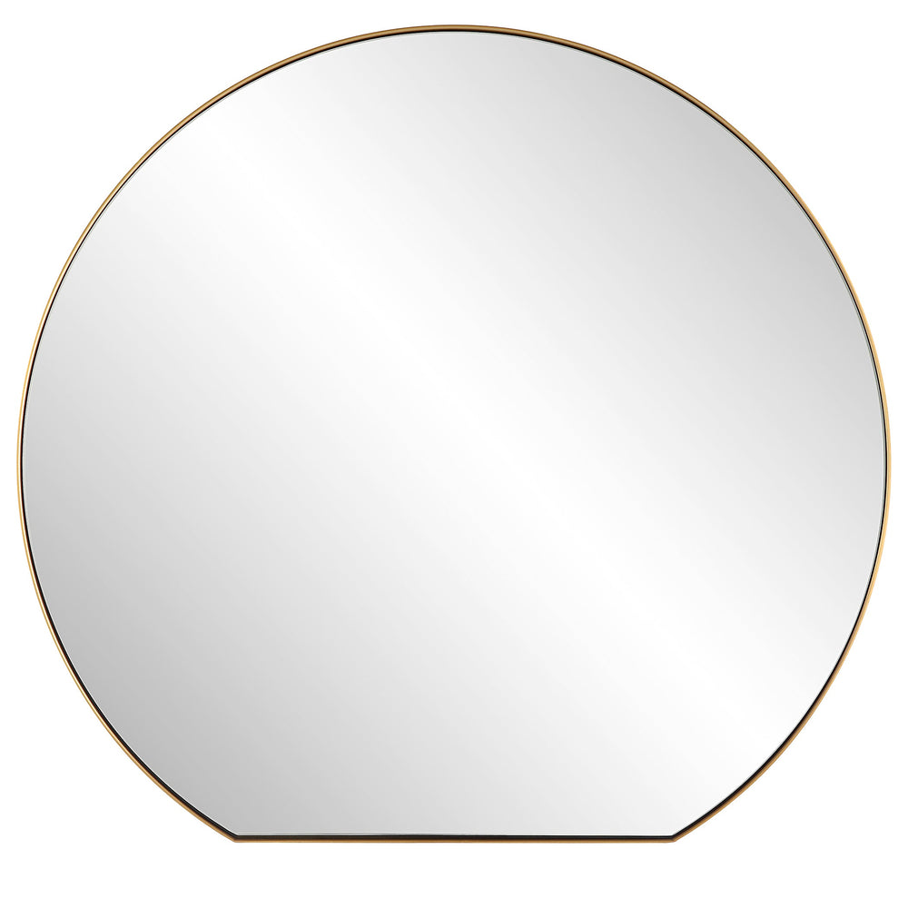 This Sleek Design Features A Plated Brushed Brass Finish Over A Stainless Steel Frame That Surrounds A Floating Polished Edge Mirror.