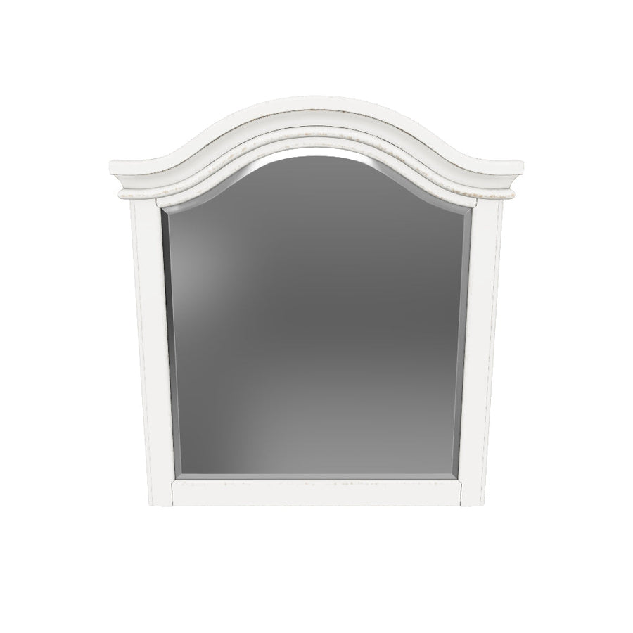 This bedroom mirror is made with wood, veneers and engineered wood, with cast resin components. Pairs with other items in the series to make a dresser and mirror kit.