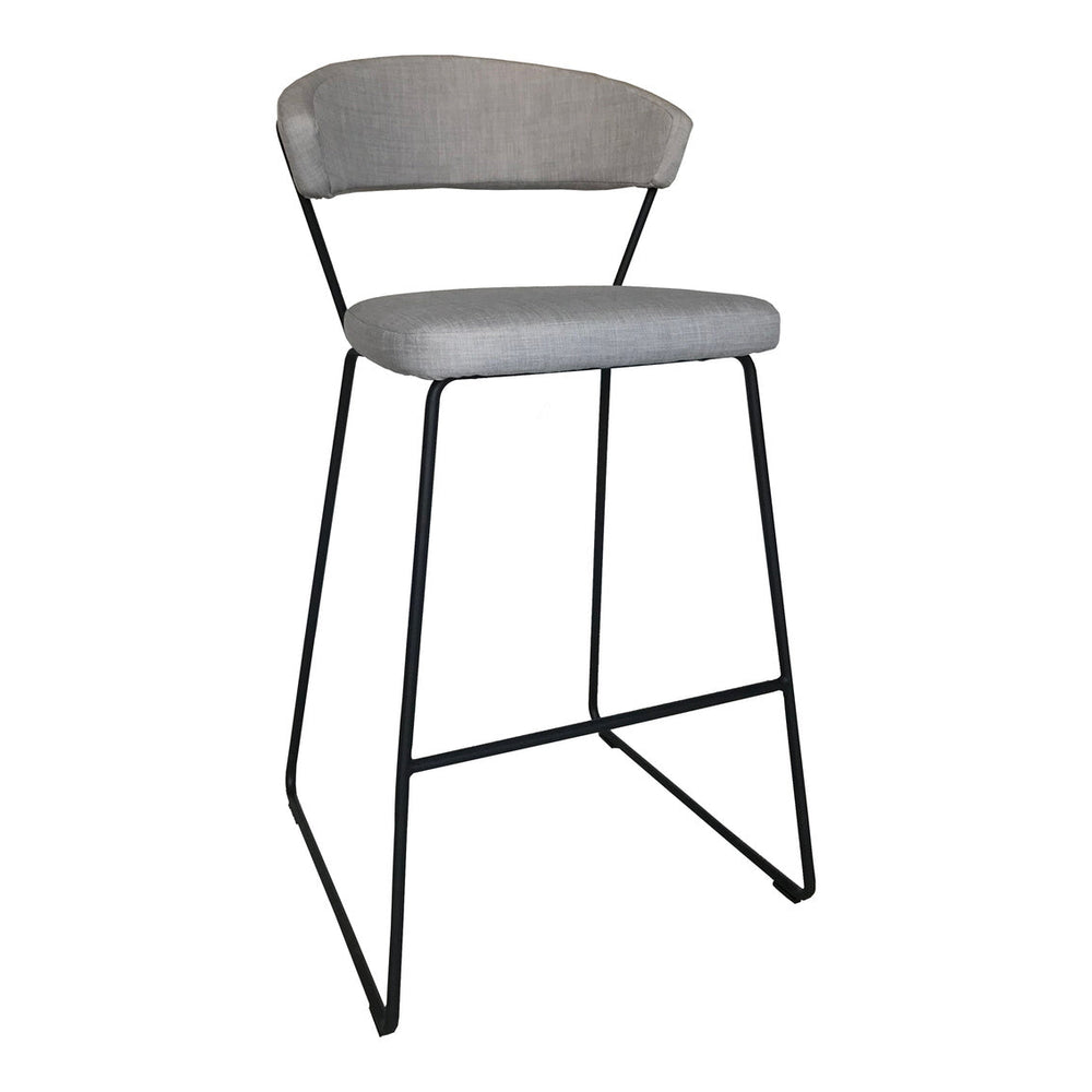 A cool, contemporary silhouette – the Adria grey barstool is one chic seat. Thin iron frame legs create an eye-catching profile, and an upholstered high-density foam seat and low back keep things comfortable and relaxed. Take a sip of sophistication when you gather around the bar in these beautiful barstools.