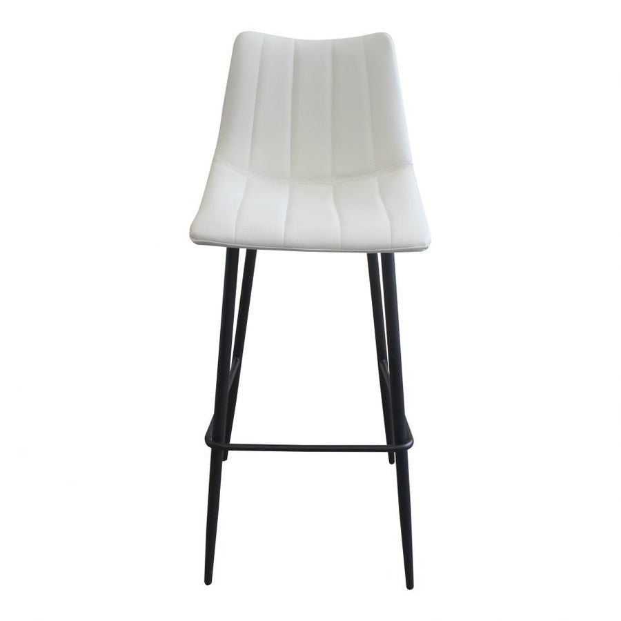Contemporary modern barstools get a new take with this sleek aesthetic. The Alibi barstool features striking vertical line stitches that add subtle detail to its monochromatic design. A Soft faux leather seat is shaped to fit for comfort so guests can relax at the island or bar counter.