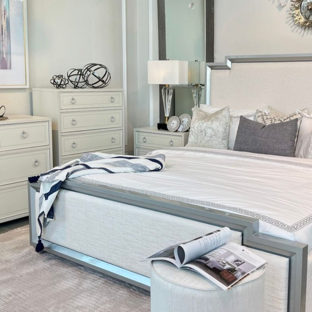 An elegant bedroom set by Roots that keeps you longing to spend your nights. Our sets come equipped with a comfy bed, a pair of nightstands, a dresser for her to do magic, a 6 drawer chest, and a 6-door wardrobe.