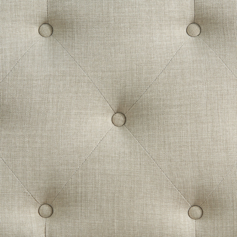 The Maddox Dining Sofa with Seven Pillows takes dining seating to the next level. This piece is fully upholstered in taupe fabric. Four taupe pillows and three grey decorative pillows with geometric designs accent this piece. Button tufting along the back adds extra flair to this already stunning piece. No need to worry about comfortability, as this sofa has foam cushion for the back and seat. Not to mention, the dark wire brush finish of the legs gives great contrast with the taupe fabric. This sofa seats three comfortably. Add this sofa to the dining table in this collection for a perfect pairing.
