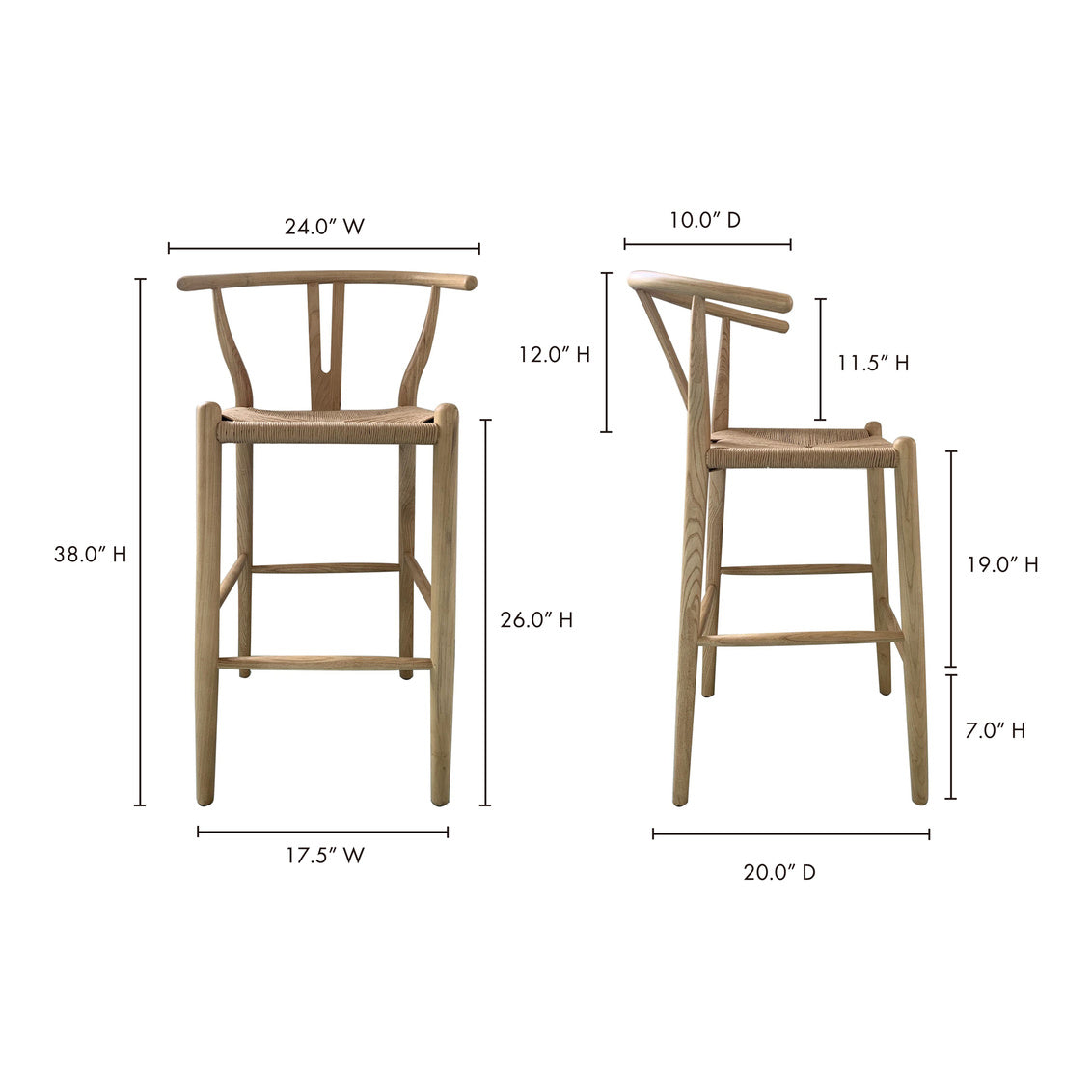 The Ventana counter stool flaunts sweet juxtaposition with its simple, sturdy construction, contemporary woven paper fiber seat, and convenient wrap around footrest. Ideal in a minimalist space or to place in a busy home for a laidback, comfortable feel. Fitted for counter-height table designs, this stylish seat comprises solid elm wood with a natural, semi-gloss finish for a lifelong construction. The Ventana design comes in various heights and shapes, don't miss out on clicking further to explore these beautiful chair designs.