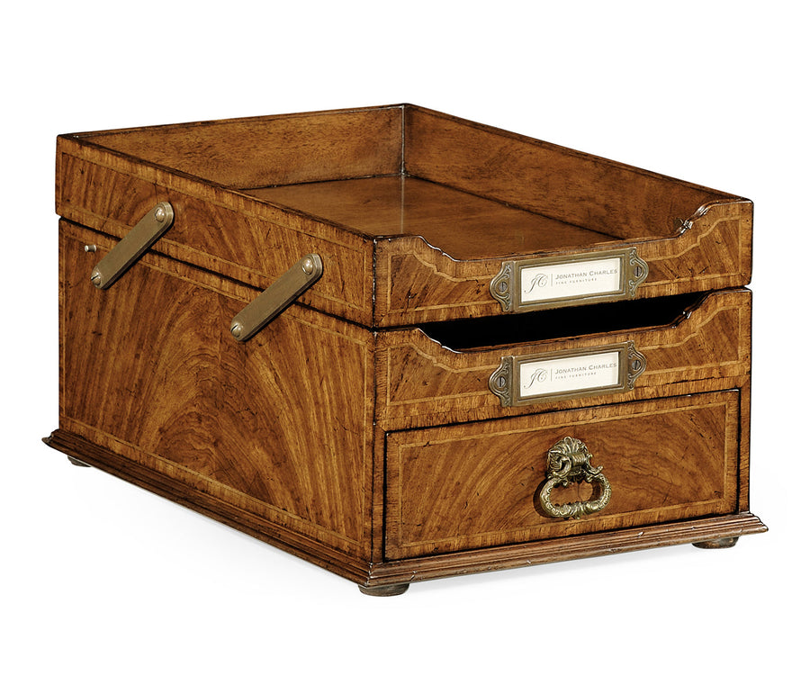 Windsor Collection - Victorian Style Crotch Walnut Letter Tray with Drawer