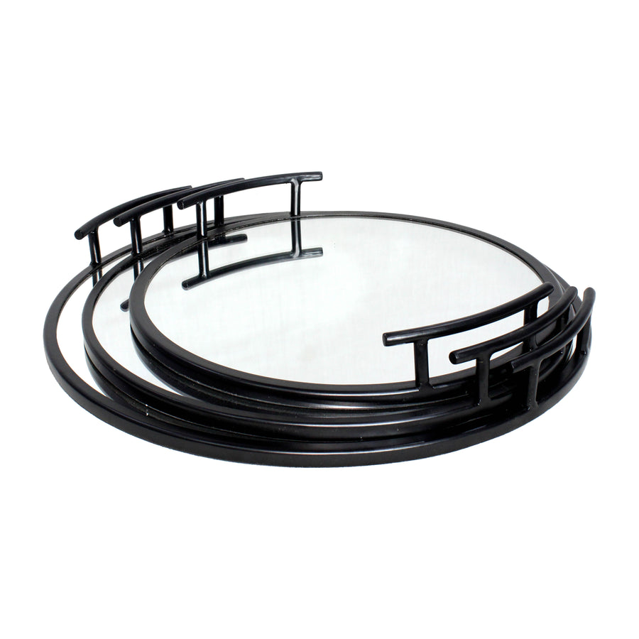Metal, S/3 14/16/18" Mirrored Trays W/ Handles, Bl