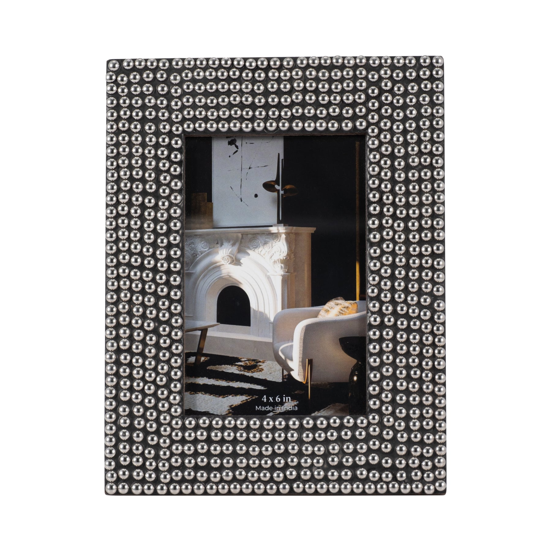 RESIN, 4X6 STUDDED PHOTO FRAME, SILVER/BLACK