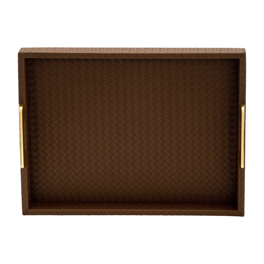 S/2 16/18"L FAUX LEATHER WEAVE TRAYS, COGNAC