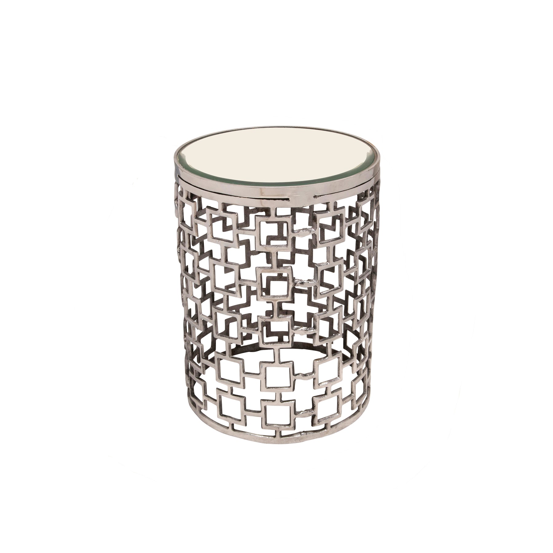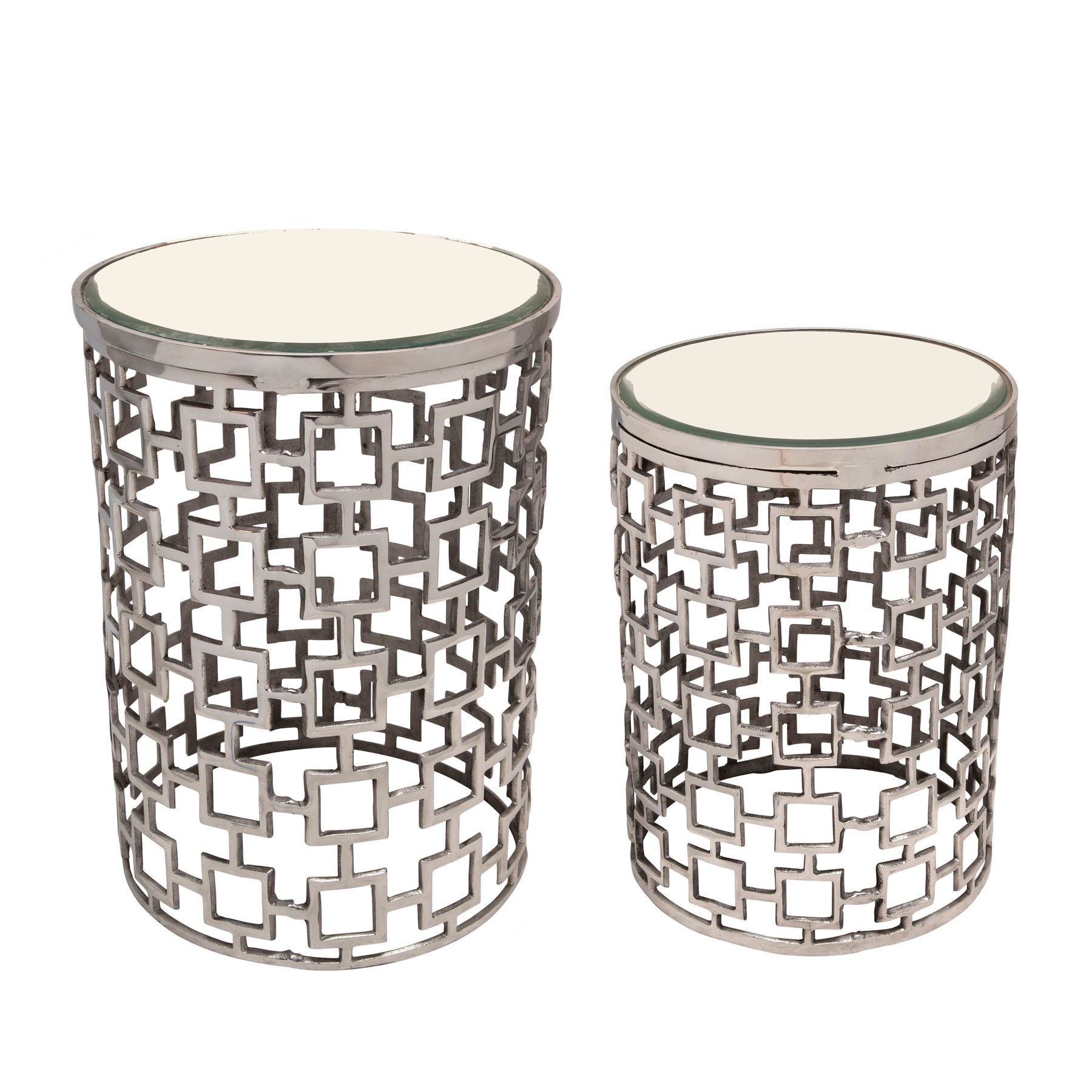 S/2 METAL SIDE TABLE W/ BEVELLED MIRROR, SILVER