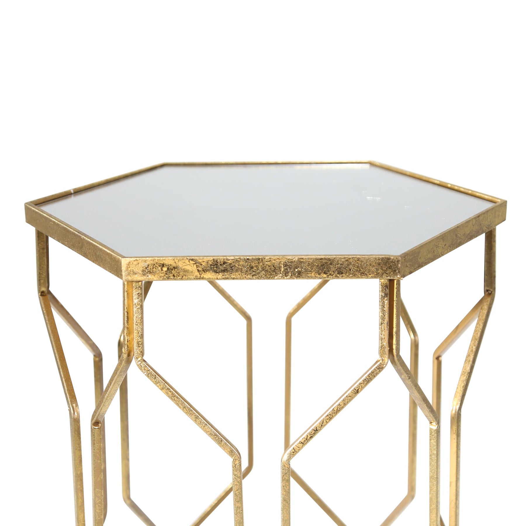 S/2 MIRRORED HEXAGON ACCENT TABLES 25/21" GOLD