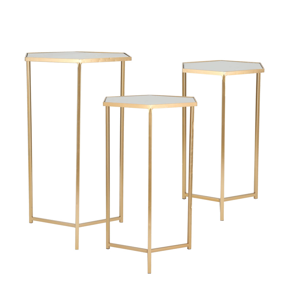 S/3 METAL/MIRROR 28/25/22" HEXAGONAL ACCENT TABLES