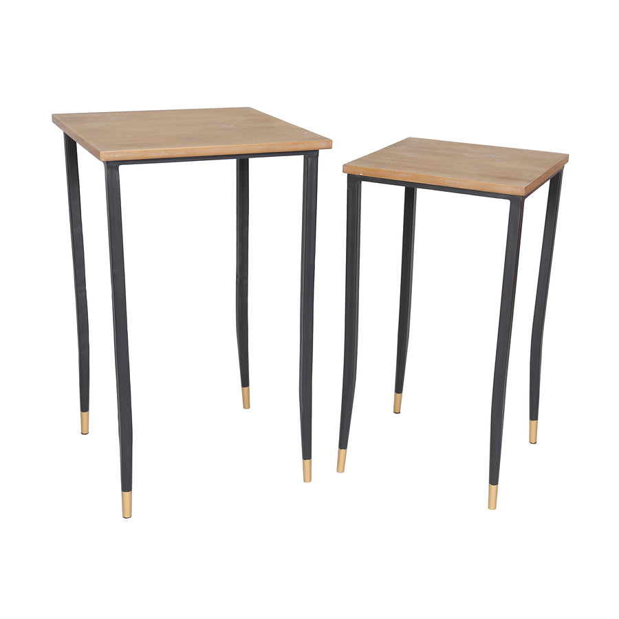 WOOD, S/2, SQUARE NESTING TABLES, NATURAL/BLACK