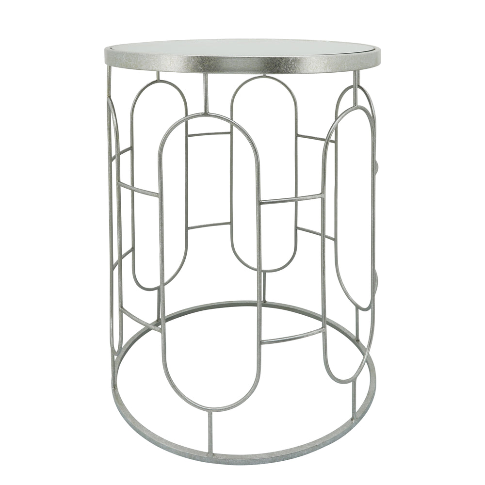 S/2 METAL SIDE TABLE W/ BEVELLED MIRROR, SILVER