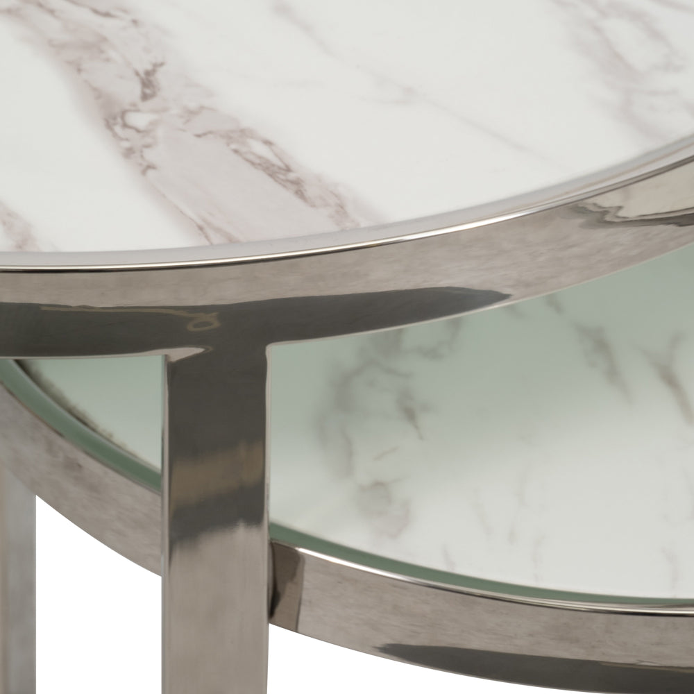 S/2 METAL/MARBLE COFFEE TABLE, SILVER