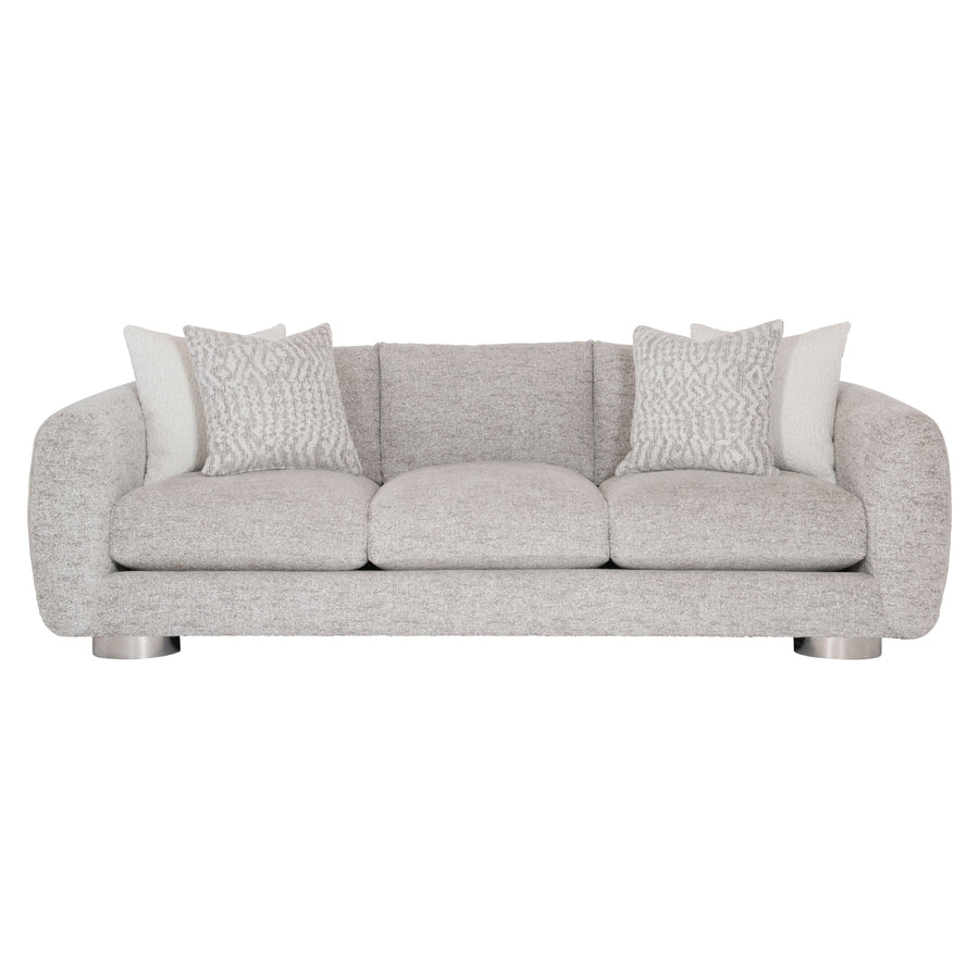 With wide polished stainless steel legs that shine like jewelry, the Ansel sofa from Bernhardt is ready to elevate the aesthetic in a modern living space. It has three fiber Blendown back pillows for comfort along with four feather down throw pillows for an inviting look. Beautifully designed and constructed the Ansel is a showstopper ideal for anchoring a seating area.