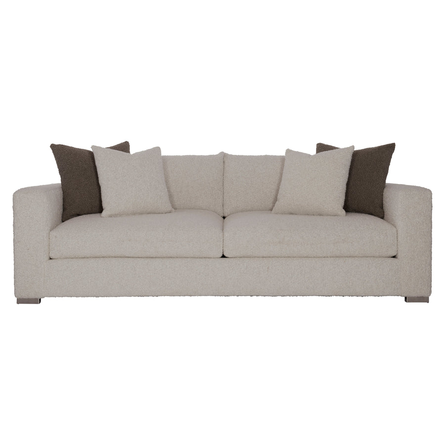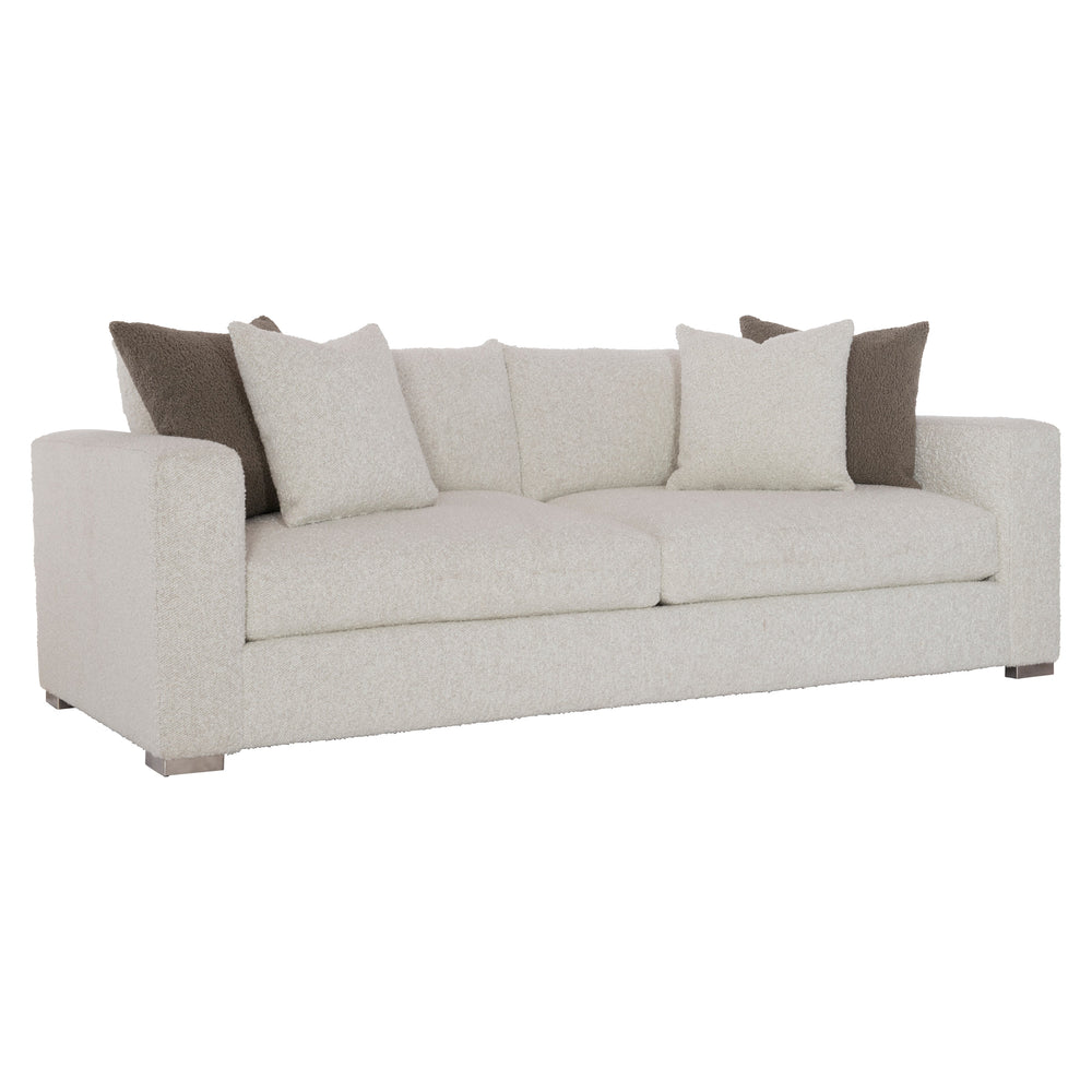 Built for lounging the Helene sofa from Bernhardt has low-profile seat cushions and clean lines that capture the elan of contemporary living. Beautifully upholstered and filled with sumptuous Luxe Feather Down the Helene has six coordinating Blendown pillows to create an inviting look suited for many aesthetics.