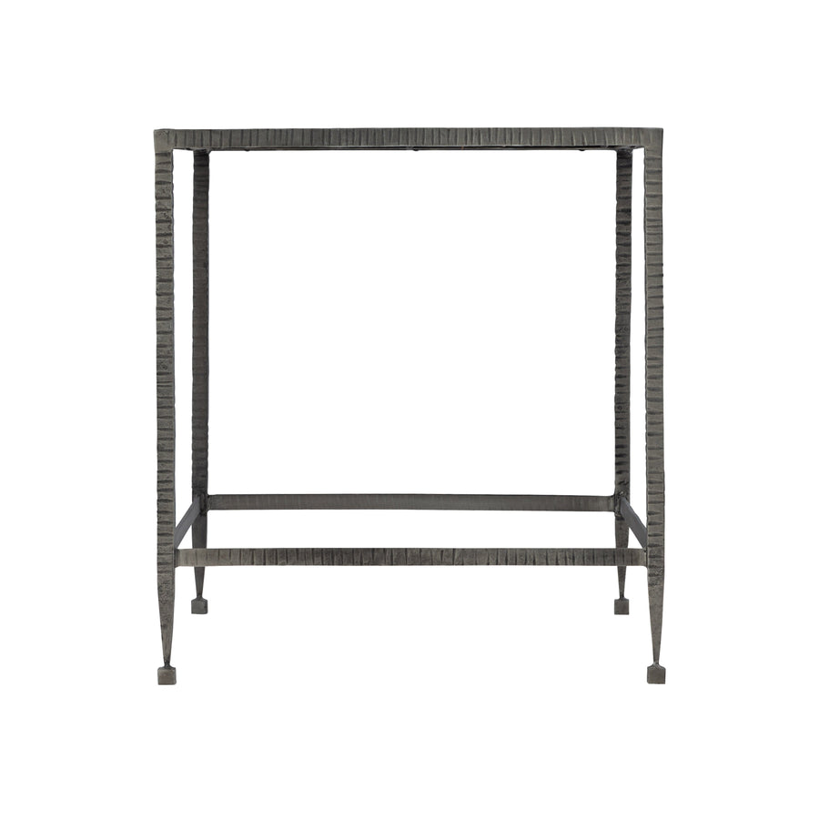 With the Linea end table, the drama lies in the contrast between the unique finishes and materials. Wire-brushed oak veneers in a Cerused Charcoal finish add subtle textures while leaving a white hang-up in the grain. The rustic look partners elegantly with the sleek cast aluminum base in a complex Textured Graphite finish. A faceted metal knob adds a jewelry-like feel to this sophisticated piece.60.96x66.04x55.88 HxDxW (cm)