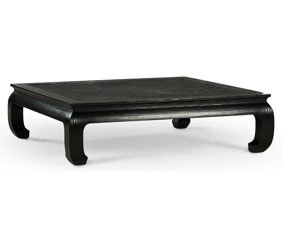 Churchman Collection - Square Ming Ebonized Coffee Table with Ebonized Rattan Top