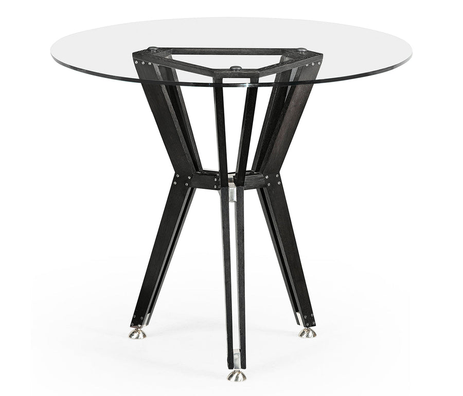 JC Edited - Architects House Collection - 24" Midcentury Style Circular Black Mocha Oak Side Table with Glass Top